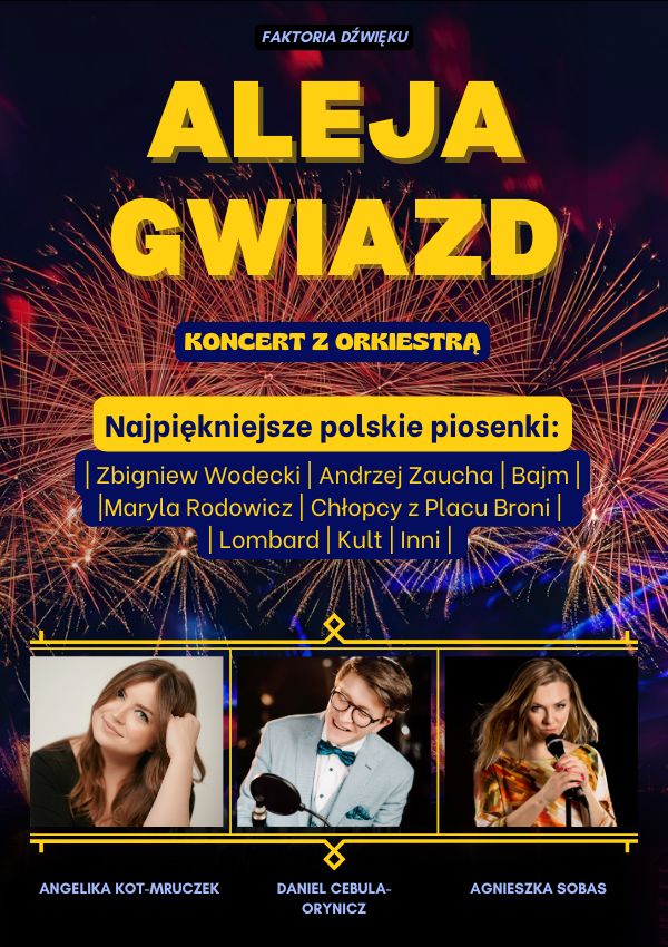 🎶✨ Przeżyj niezapomniany wieczór z "Aleją Gwiazd"! Kultowe hity polskiej sceny rockowej i popowej w wykonaniu najlepszych artystów. Wspólne śpiewanie, emocje i magia muzyki – nie możesz tego przegapić! 🎤🎸